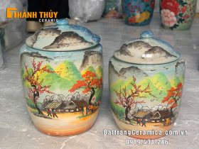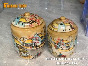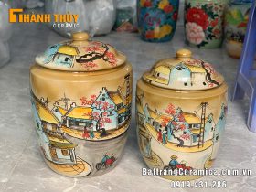Hũ đựng gạo vẽ cảnh phố cổ Hà Nội 5kg