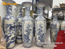 Lộc bình tứ cảnh nổi men Lam cao 1m6
