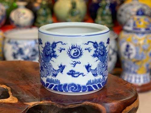 Bát hương song long chầu nguyệt phi 20cm sản sản cao cấp trong bộ đồ thờ Bát Tràng. Hoạ tiết Rồng chầu nguyệt được vẽ tay thủ công cực kỳ tinh sảo. Thể hiện được trưng văn hoá của dân tộc Việt Nam.