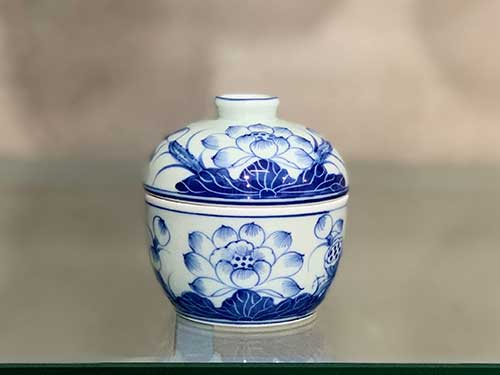 Bát nước thờ vẽ hoa Sen là một bộ phận quan trọng trong bộ đồ thờ men Lam của Bát Tràng