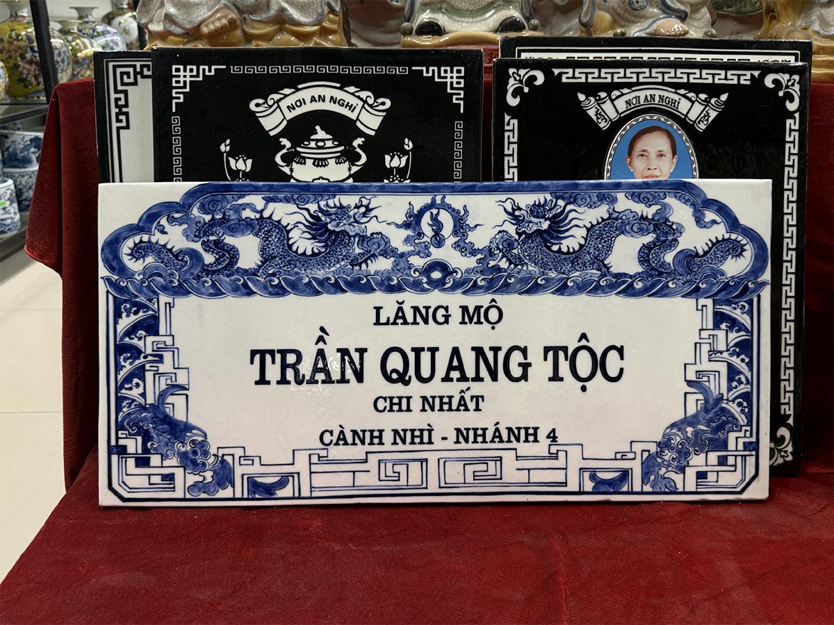 Quý khách đang muốn tìm kiếm các mẫu bia mộ đẹp bằng gốm sứ cao cấp ? Muốn tìm giá bia mộ sứ men lam vẽ tay ? Muốn tìm địa chỉ cửa hàng làm bia mộ cao cấp không phai màu ở đâu Hà Nội, Hồ chí minh và các tỉnh Quảng Ninh, Hải Phòng, Hải Dương, Thái Bình, Nam Định, Việt Trì, Phú Thọ, Bắc Giang, Bắc Ninh… ? Hoặc có nhu cầu đặt mua Bia lăng mộ vẽ tay cao cấp xin vui lòng liên hệ: