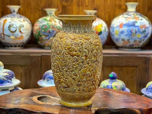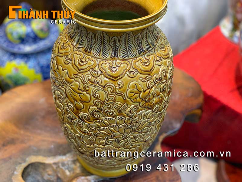 Bình cắm hoa gốm khắc hoa cao cấp 35cm