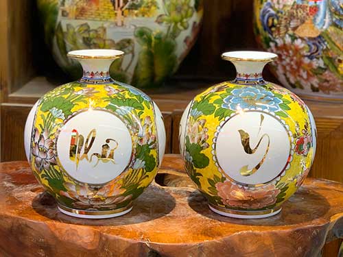Bình tài lộc vẽ vàng 24k Vạn Sự Như Ý cao 25cm