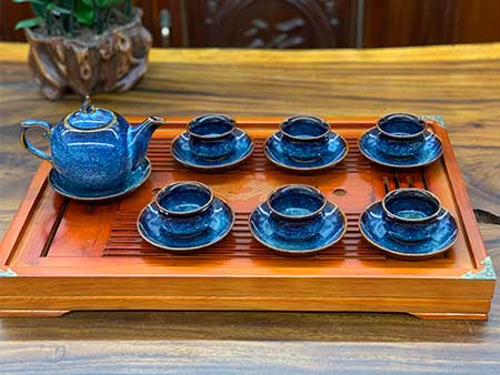 Bộ ấm chén bát tràng men hoả biến xanh ocean blue