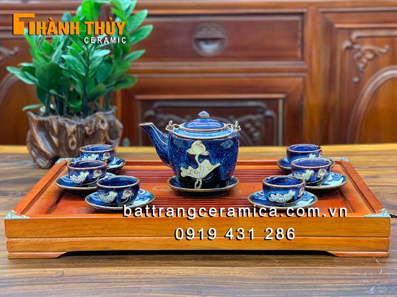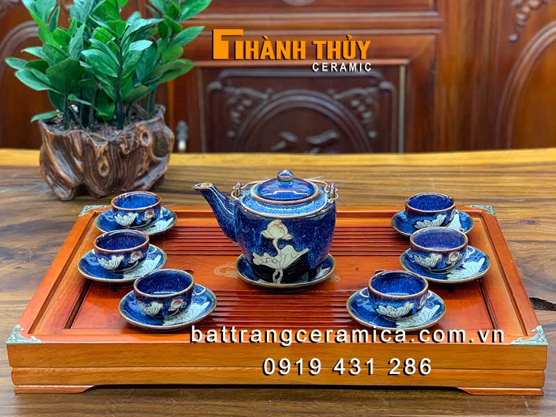 Bộ ấm chén hoa sen men hoả biến gốm sứ Bát Tràng