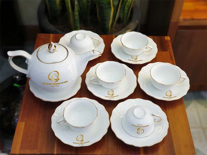 In Logo: Logo sẽ được in lên bề mặt ấm, chén đĩa tuỳ theo maket.