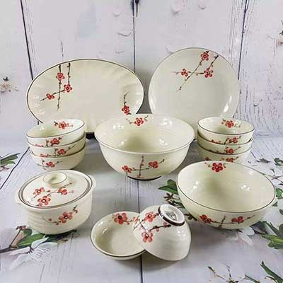 Bộ bát đĩa đẹp men kem vẽ hoa đào bao gồm 13 món: