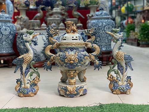Bộ đỉnh hạc gốm sứ Bát Tràng hay còn gọi là bộ tam sự bằng gốm sứ