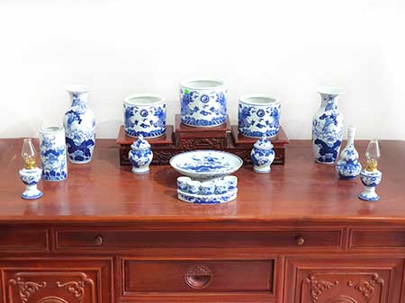 Bộ đồ thờ Bát Tràng đầy đủ men xanh Lam – đại cát 05