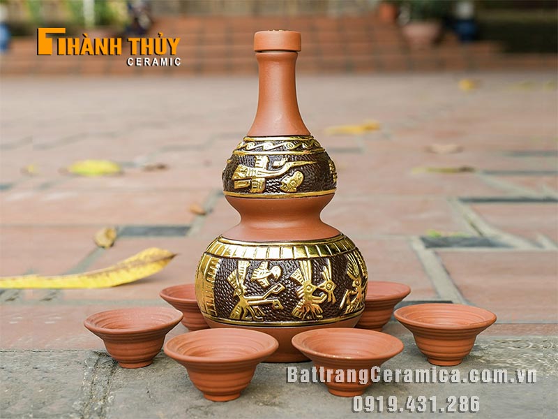 Bộ nậm đựng rượu Âu lạc 1 lít bao gồm 1 nậm đựng rượu dung tích 1 lít và 6 bát uống rượu.