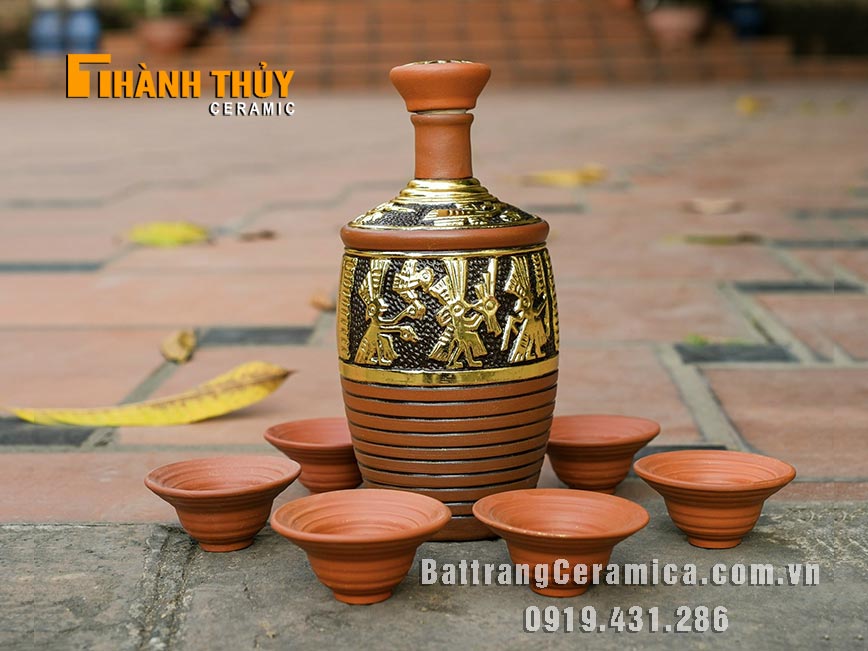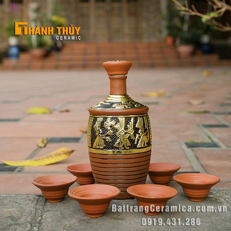 Bộ nậm đựng rượu gốm dát vàng 1 lít