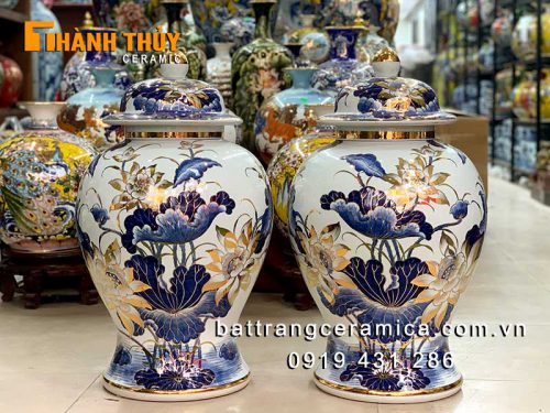 Chóe sứ bát tràng hoa sen vẽ vàng 60 lít gốm sứ cao cấp Bát Tràng.