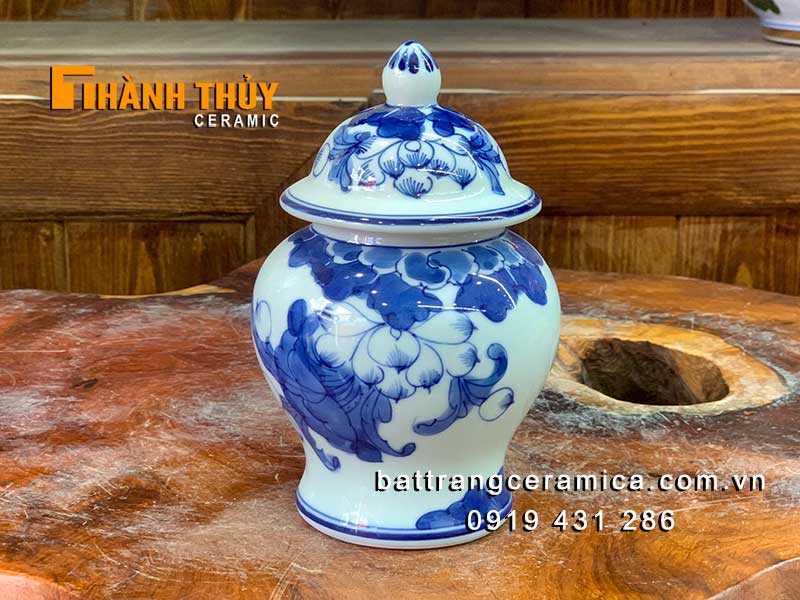 Chóe thờ cúng vẽ hoa Sen cao 18 cm là một bộ phận quan trọng trong bộ đồ thờ men Lam của Bát Tràng.