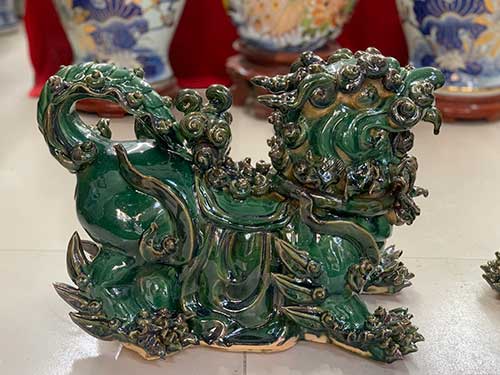 Tượng Nghê gốm sứ Bát Tràng men xanh ngọc
