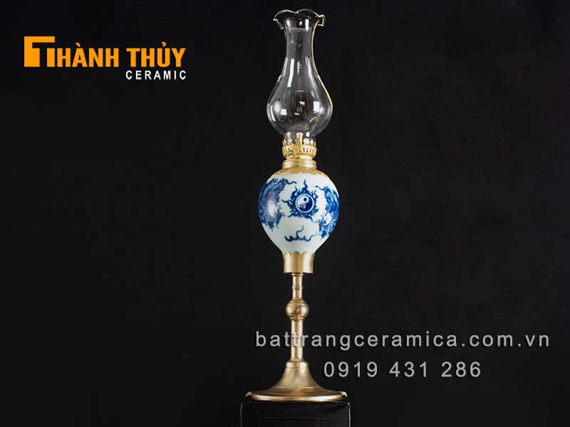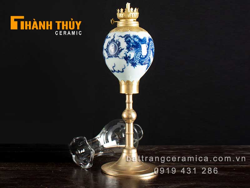 Đèn dầu thờ quả lê vẽ Rồng xanh lam 31cm