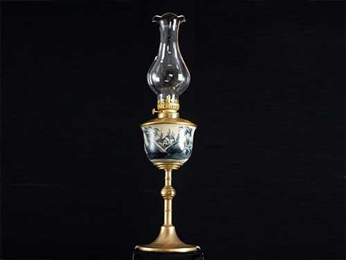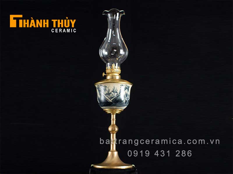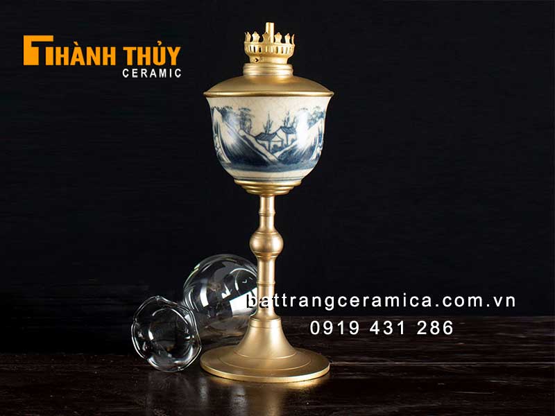 Đèn dầu thờ men rạn cổ vẽ sơn thủy cao 35cm