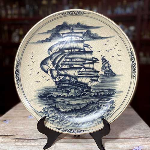 Đĩa phong thủy sứ bát tràng vẽ cảnh Thuận buồm xuôi gió 35cm