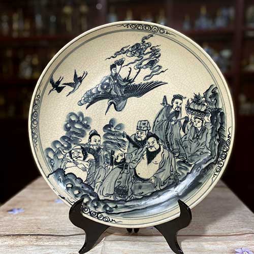 Chính vì vậy mà đĩa giả cổ vẽ bát tiên quá hải 35cm có thể trưng bày phòng khách, hoặc làm món quà biếu mà con cháu gửi gắm cha ông, người thân của mình.