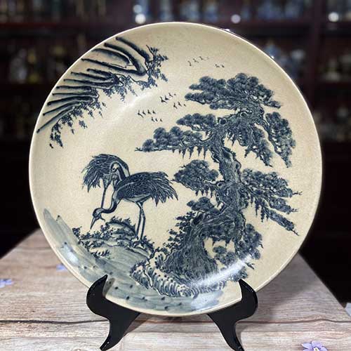 Đĩa gốm trang trí cảnh Tùng hạc trường thọ 35cm