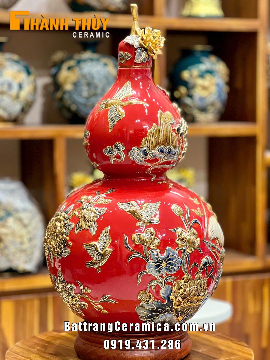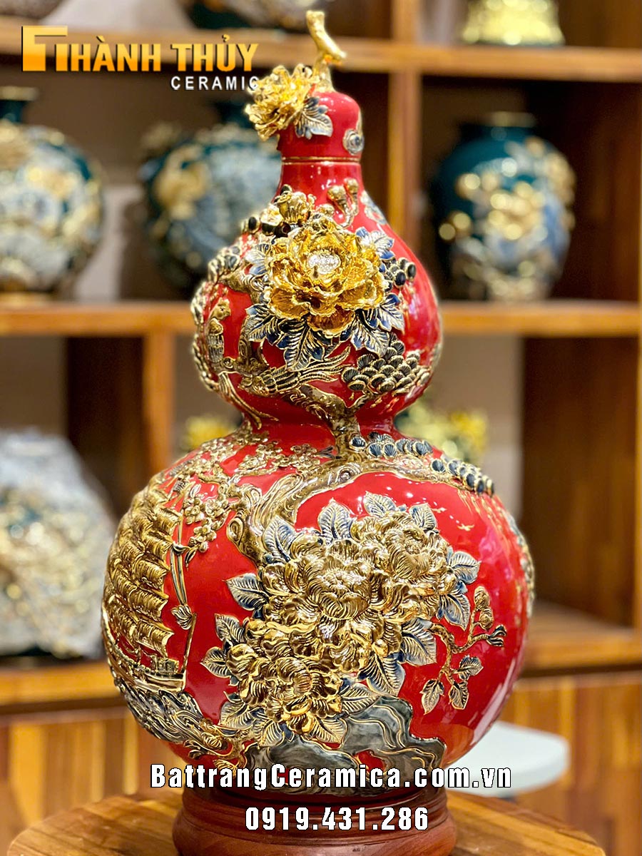Quý khách đang muốn tìm kiếm các mẫu bầu hồ lô phong thủy bằng gốm sứ Bát Tràng ? Muốn tìm giá bình hồ lô phong thủy vẽ vàng 24k cao cấp ? Muốn tìm địa chỉ mua hồ lô bằng sứ giá rẻ ở Hà Nội, Hải Dương, Hải Phòng, Quảng Ninh, Hưng Yên, Thái Bình, Nam Định, Hà Nam, Phú Thọ, Thái Nguyên, Bắc Ninh, Bắc Giang, Lạng Sơn… ? Hoặc có nhu cầu đặt mua Hồ lô cao cấp Thuận buồm xuôi gió cao 65cm xin vui lòng liên hệ: