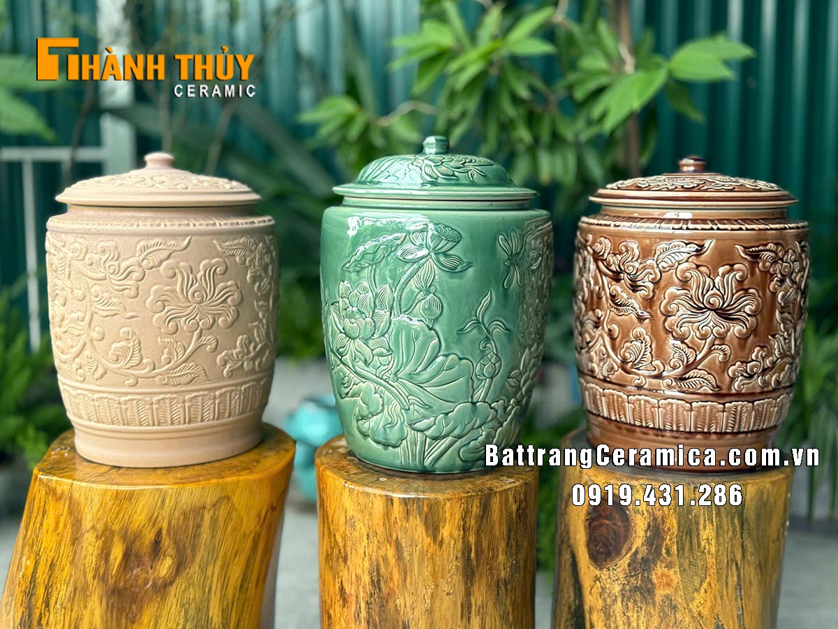 Quý khách đang muốn tìm kiếm các mẫu hũ gạo đẹp nhất, chum đựng gạo bằng sành cao cấp ? Muốn tìm giá hũ đựng gạo Phúc Lộc Thọ bằng sành, đất nung của Bát Tràng ? Muốn tìm địa chỉ mua hũ gạo rẻ đẹp uy tín ở đâu Hà Nội, tp Hcm và các tỉnh Thái Bình, Nam Định, Hà Nam, Hòa Bình, Sơn Tây, Phú Thọ, Bắc Giang, Bắc Ninh, Hải Dương, Hải Phòng, Quảng Ninh… ? Hoặc có nhu cầu đặt mua Hũ gạo hồng hoa 15 kg xin vui lòng liên hệ: