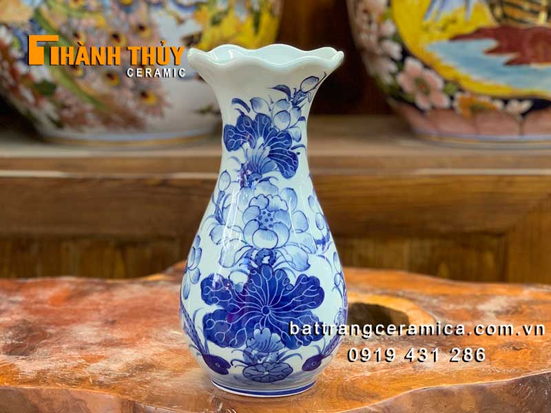 Quý khách đang muốn tìm kiếm các mẫu bình cắm hoa trên bàn thờ men xanh lam đẹp ? Muốn tìm giá lọ hoa bàn thờ thờ bằng sứ bát tràng ? Muốn tìm địa chỉ bán bình bông thờ cúng giá rẻ ở đâu Hà Nội, tp Hồ Chí Minh và các tỉnh Hải Dương, Hải Phòng, Bắc Ninh, Bắc Giang, Quảng Ninh, Hạ Long, Thái Bình, Phú Thọ, Thái Nguyên … ? Hoặc có nhu cầu đặt mua Lọ hoa bàn thờ dáng miệng loe cao 27cm xin vui lòng liên hệ: