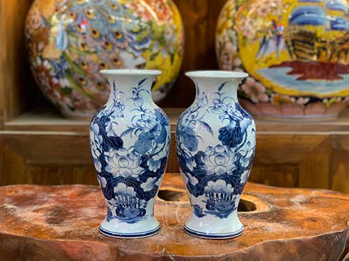 Lọ hoa để bàn thờ men lam vẽ Sen cao cấp
