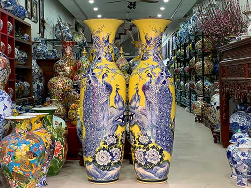 Lọ lục bình Công danh phú quý nền vàng 1m4 trưng bày trong nhà hay trong phòng khách làm bừng sáng không gian nhà bạn. Hơn thế nữa về phong thủy đôi lộc bình này còn mang lại công danh, tài lộc phú quý cho gia chủ.