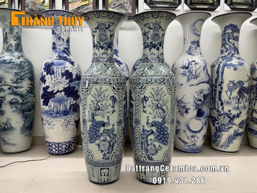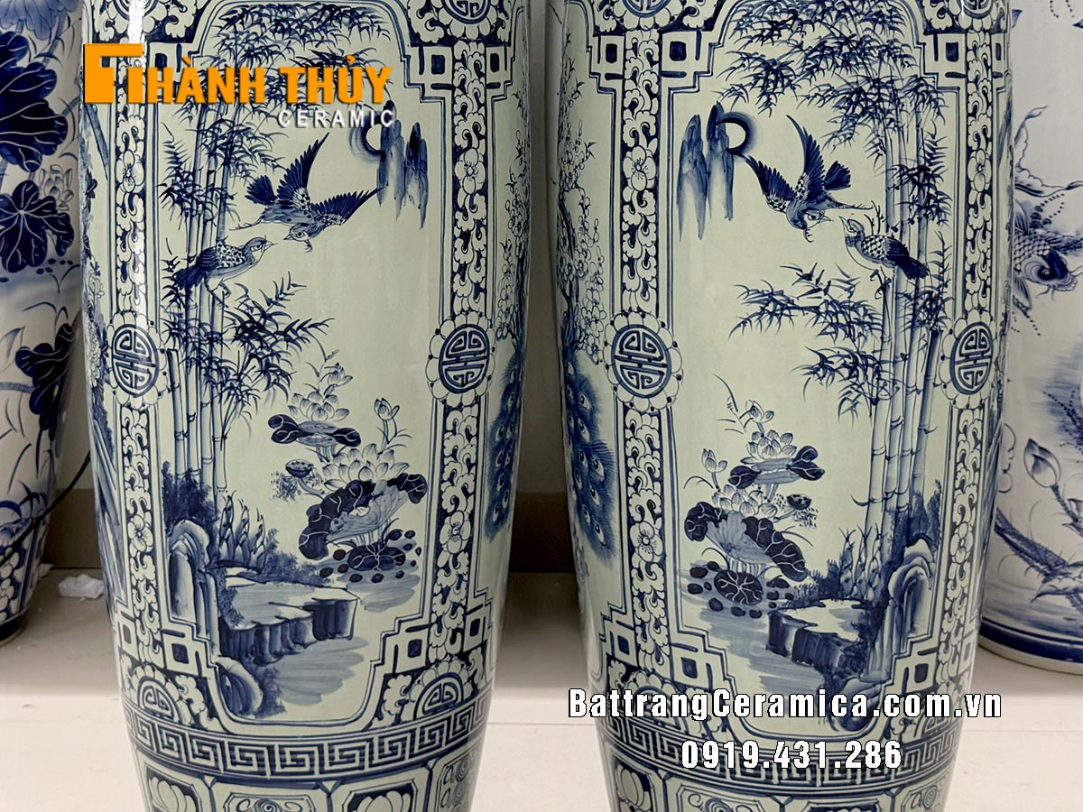 Chi tiết video đôi lọ lộc bình sứ tứ quý men Lam cao 1m4