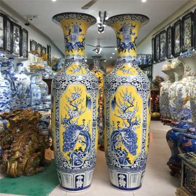 - Lộc bình sứ nền vàng tứ cảnh 1m6