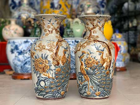 Quý khách đang muốn tìm kiếm các mẫu lọ lộc bình cao 40 cm, 50 cm, 60 cm, lộc bình cắm hoa ngày tết ? Muốn tìm giá lộc bình trên bàn thờ hàng đẹp ? Muốn tìm địa chỉ bán lục bình đẹp giá rẻ, uy tín ở đâu Hà Nội, tp Hcm và các tỉnh Hải Dương, Hải Phòng, Thái Bình, Vĩnh Yên, Phú Thọ, Thái Nguyên, Bắc Ninh, Bắc Giang, Hạ Long, Quảng Ninh, … ? Hoặc có nhu cầu đặt mua Lục bình đắp nổi chim Công hoa Đào cao 40cm xin vui lòng liên hệ: