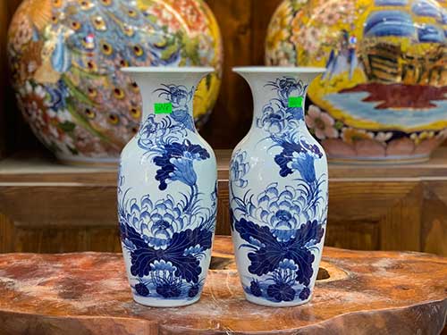 Lục bình nhỏ cắm hoa thờ vẽ Sen 28cm hàng gốm sứ men xanh lam cao cấp của Bát Tràng. Đôi lục bình này có thể dùng trưng bày trên bàn thờ trang trí, hoặc cắm hoa cúng hàng ngày rất đẹp.