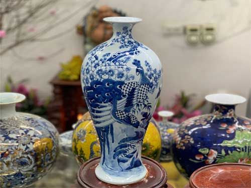 Mai bình tích lộc Bát Tràng chim Công hoa đào cao 45cm