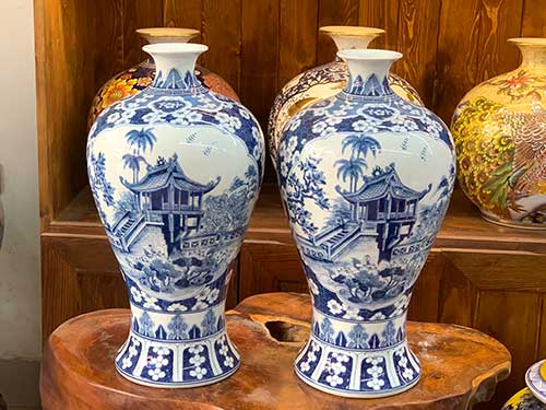 Mai bình tích lộc nhị cảnh hà nội cao 50cm gốm sứ men khử cao cấp Bát Tràng.