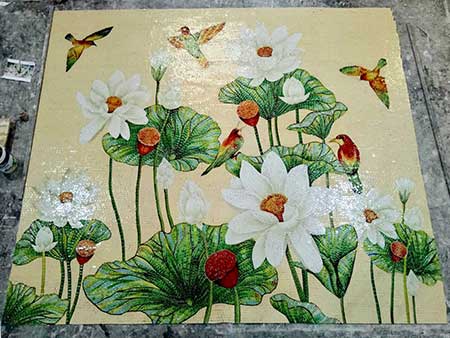 Tranh ghép gốm mosaic hoa sen trang trí phòng khách bằng gốm sứ Bát Tràng
