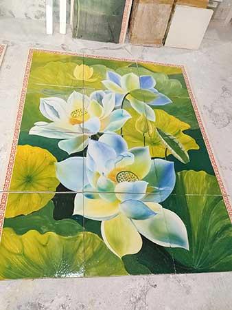Tranh gốm ốp tường ngoài trời vẽ hoa Sen
