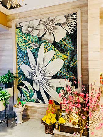 Tranh ốp biệt thự gốm mosaic hiện đại trang trí phòng khách hàng cao cấp Bát Tràng