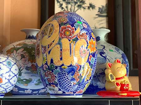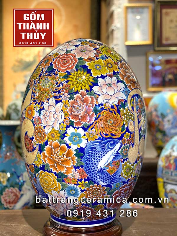 Trứng phong thủy Bát Tràng vẽ Phúc Đức ngàn hoa